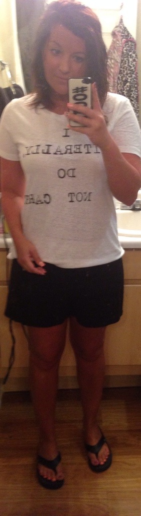 Casual “OOTD” Heading to the movies dressed comfy and casual. Tee: I Literally Do Not Care Forever 21 $13.80 Shorts: Styles for Less $14.99 Share this: Click to share on X (Opens in new window) X Click to share on Facebook (Opens in new window) Facebook Click to share on Pinterest (Opens in new window) Pinterest Click to share on Tumblr (Opens in new window) Tumblr Like Loading...