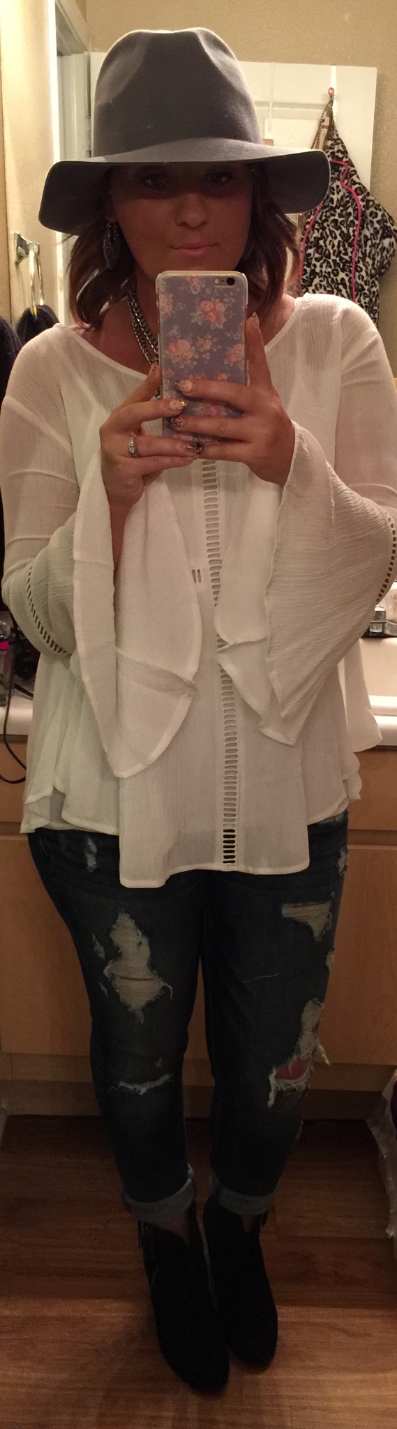 OOTD 12-11-14 Top: Love Culture $26.95 Jeans: Express $88 Necklace: Forever 21 set of 3 $19.90 Hat: Heart Boutique Booties: Off Broadway Share this: Click to share on X (Opens in new window) X Click to share on Facebook (Opens in new window) Facebook Click to share on Pinterest (Opens in new window) Pinterest Click to share on Tumblr (Opens in new window) Tumblr Like Loading...