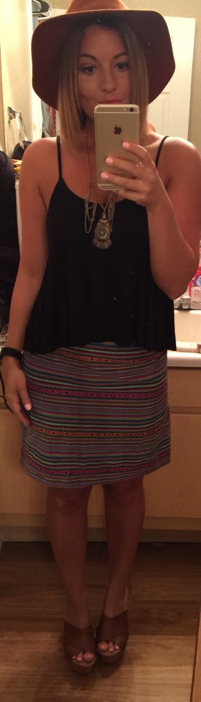 OOTD 4-21-15 Top: Forever 21 Skirt: Marshalls Shoes: Target Necklace: Love Culture Hat: Heart Boutique Share this: Share on X (Opens in new window) X Share on Facebook (Opens in new window) Facebook Share on Pinterest (Opens in new window) Pinterest Share on Tumblr (Opens in new window) Tumblr Like Loading...